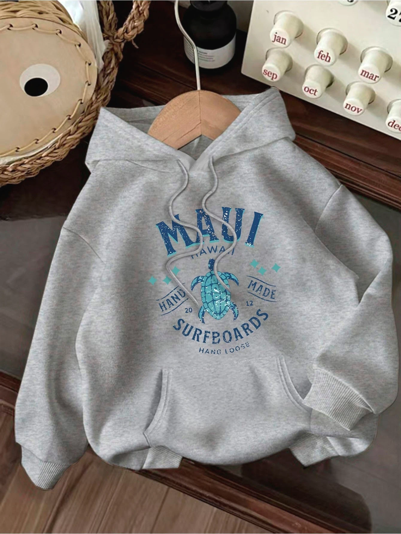 2025 Autumn and Winter "Hawaii Maui" Surfboard Printed Casual Hooded Pullover for Women's Casual Hoodies Clothing